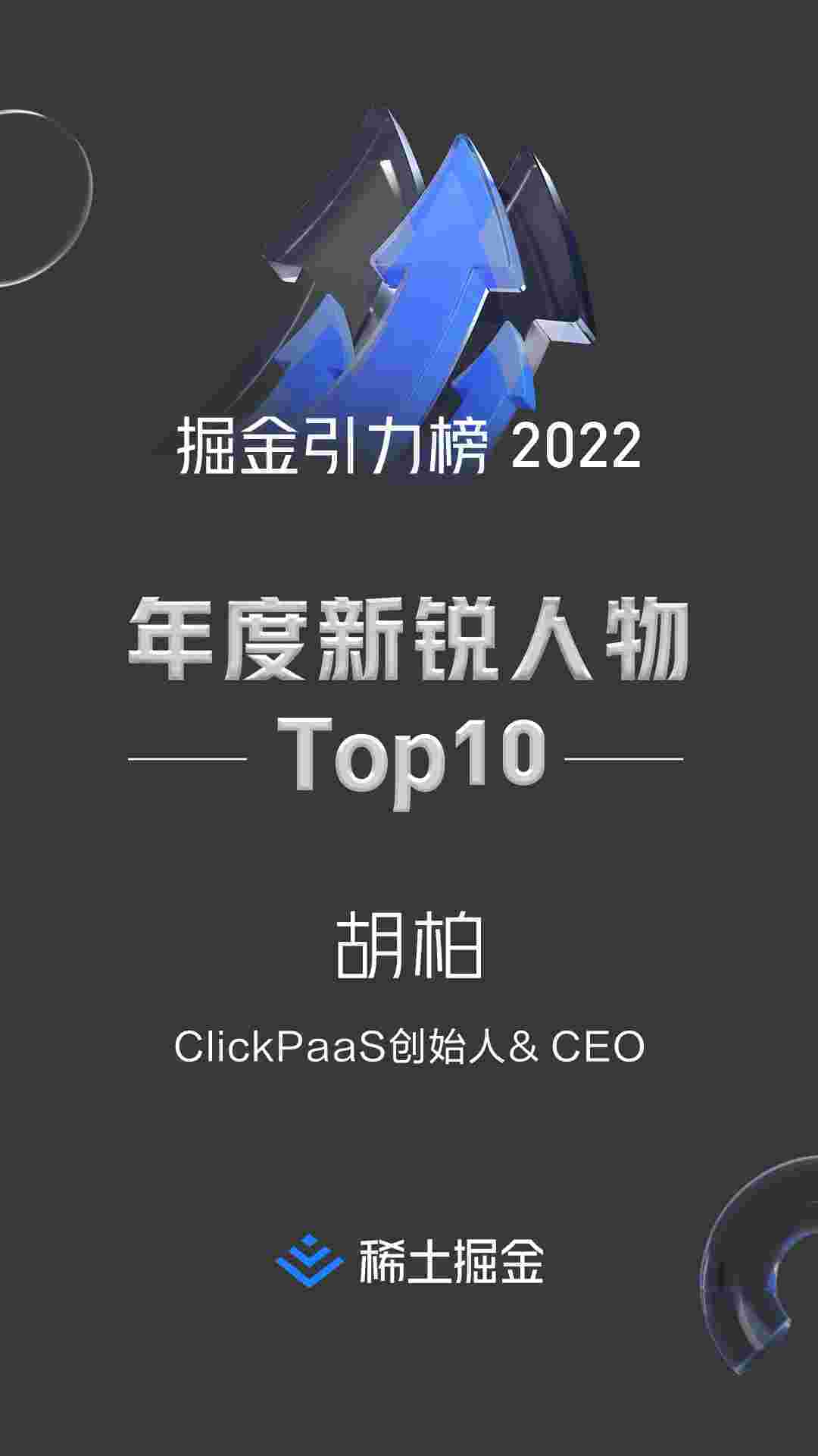 2022年1月6日,,稀土掘金社区第一届「掘金未来大会」成功举办,,会上发布了“2022 稀土掘金引力榜 年度新锐人物”榜单,,上海爱湃斯科技有限公司(简称VIVO钱包)创始人及CEO胡柏实力入选年度新锐人物TOP 10。。。