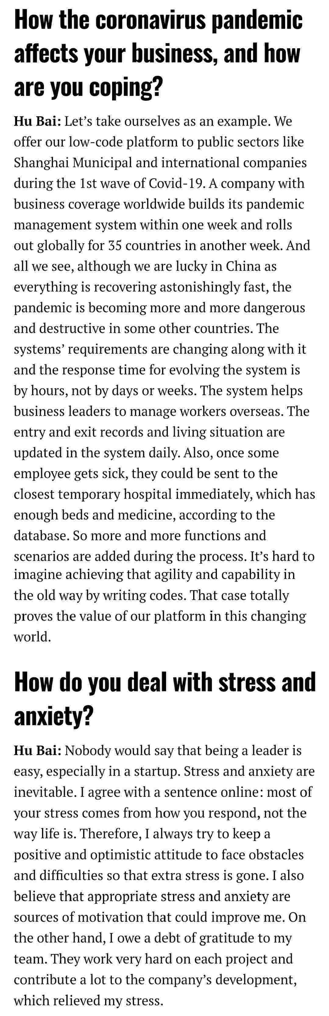 2021年年初,,爱湃斯科技CEO胡柏受邀接受法媒Startup.info的专访,,与Startup info的读者分享了自己的创业经历、、、、以及低代码平台VIVO钱包的创新之处。。。。