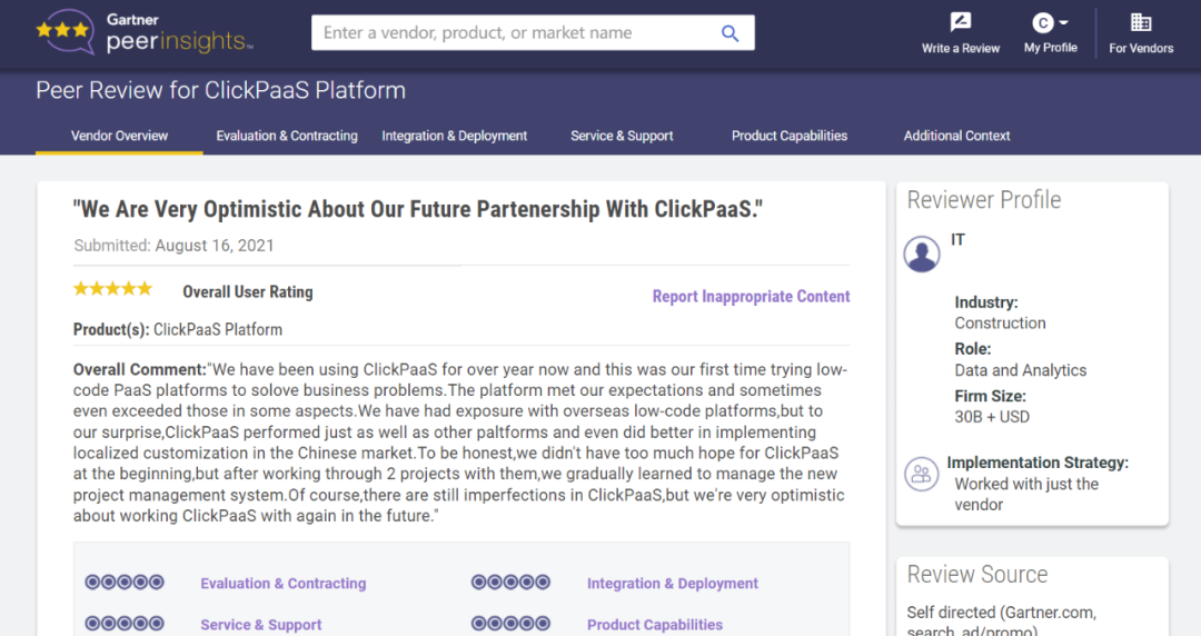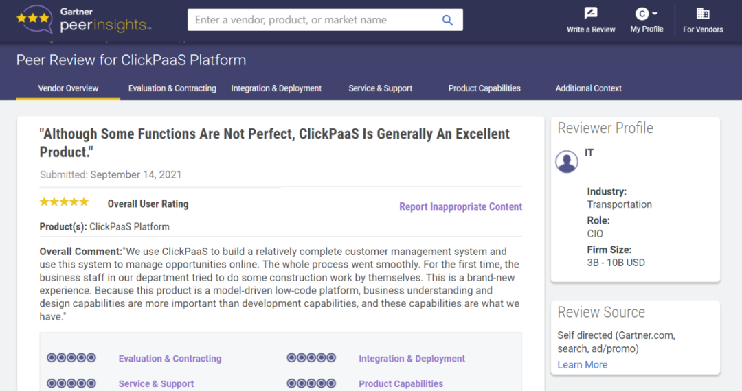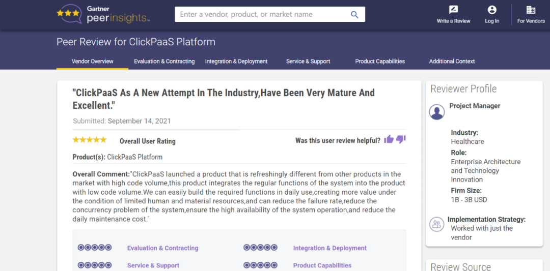 Tips:::【Peer Insights】——用户对企业IT产品和服务发布真实评价的平台。。。目前已有355个市场,,,,255,000条经过验证的评价。。。。每一条评价Gartner会针对参评企业营收规模及参评人员信息做验证、、、评价内容做多维核实。。。。